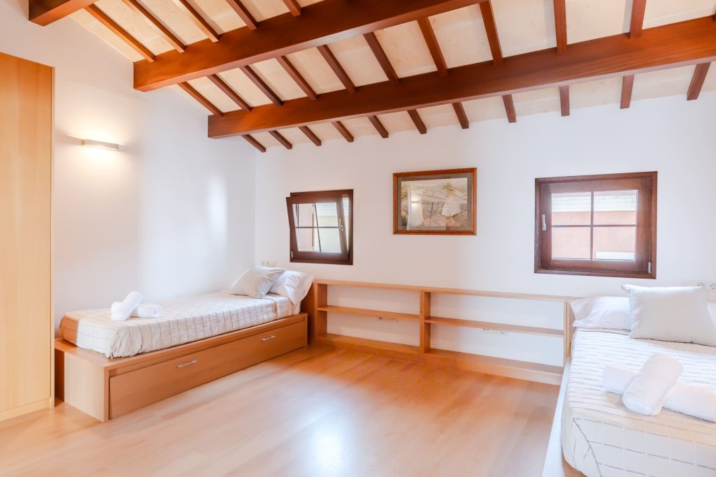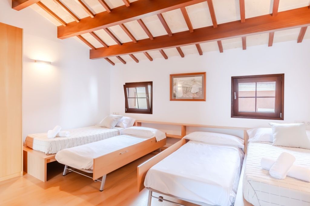 La vivienda dispone de tres dormitorios cuidadosamente diseñados para garantizar comodidad y descanso: un dormitorio principal amplio y muy luminoso con cama doble; un segundo dormitorio, también con cama doble, tranquilo y lleno de luz natural; y un tercer dormitorio con cuatro camas individuales, especialmente pensado para familias con niños o grupos que buscan espacio y funcionalidad sin renunciar al confort.