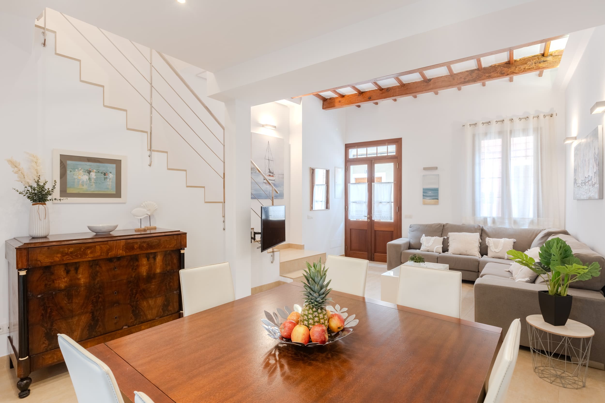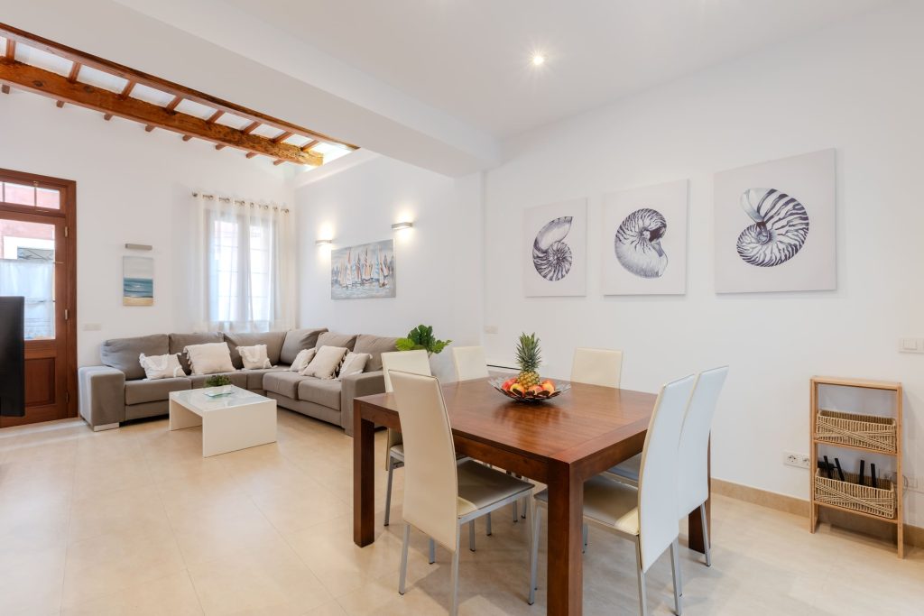 El salón-comedor es amplio y luminoso, con una zona de estar cómoda y una gran mesa para comidas y sobremesas largas. Su conexión directa con el patio interior aporta luz natural y una agradable sensación de amplitud.